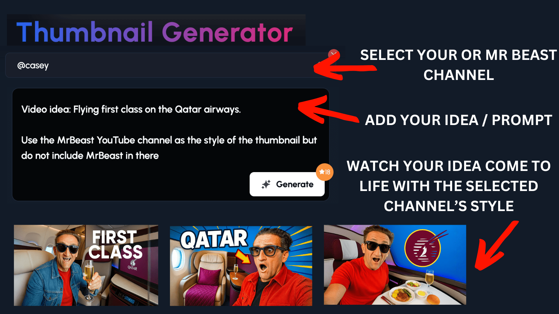 Step 2. Instruct 1of10 what you want (don't forget to tell it to use the MrBeast channel's style and not to include MrBeast's face)