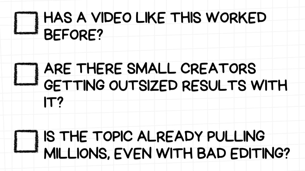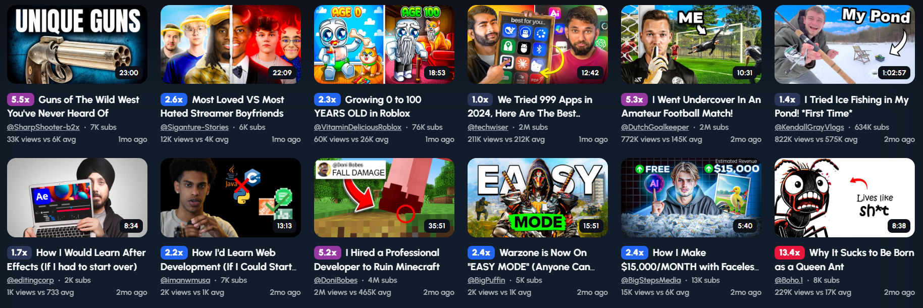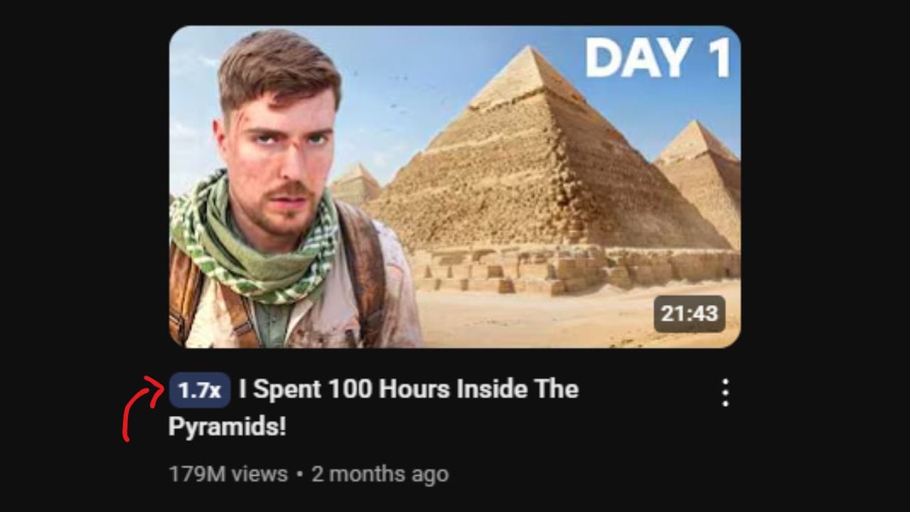 When Leander is ideating, he starts by looking for outliers. These are videos that overperformed compared to the average of a channel.