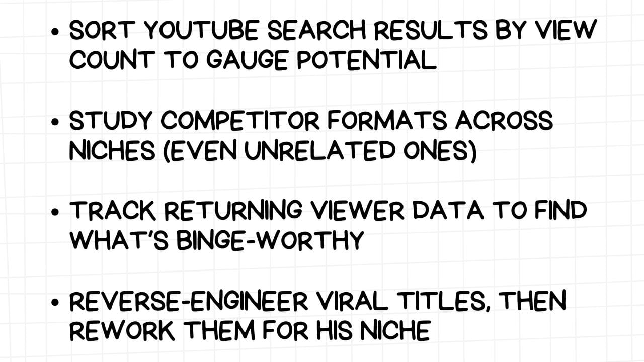 He didn’t make a hard cut, but micro-pivots, and each new video had at least one familiar element - the tone and the storytelling style his audience already trusted.