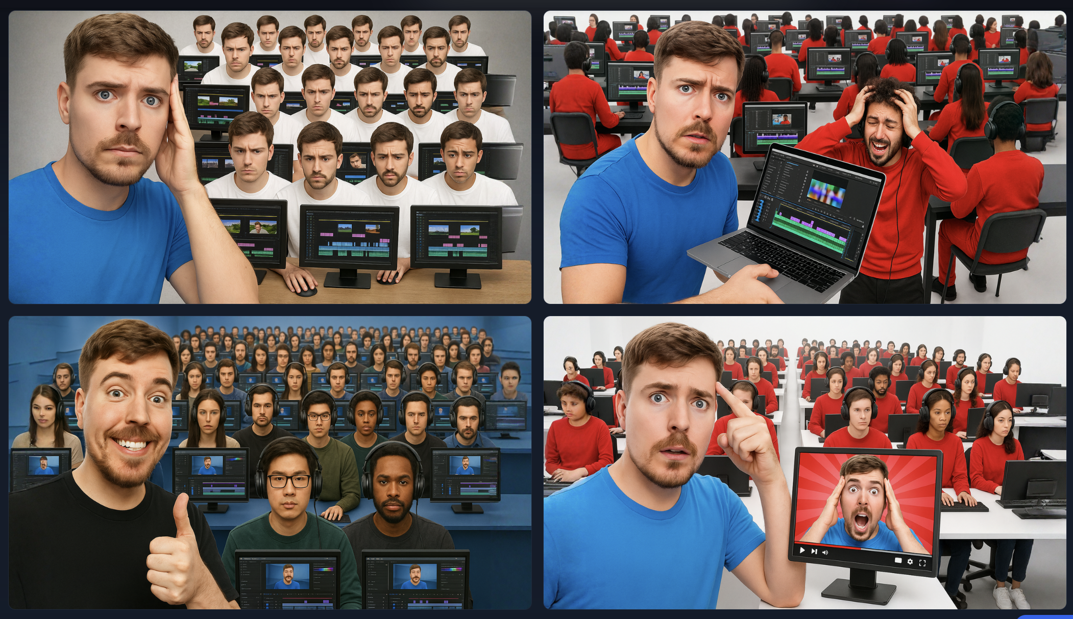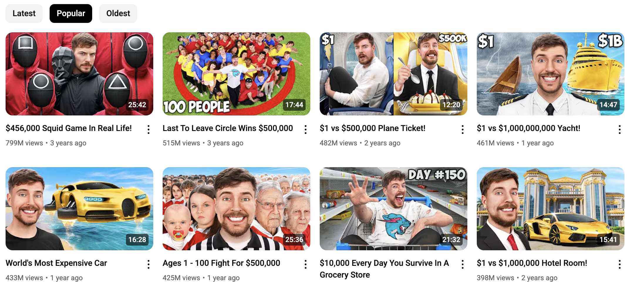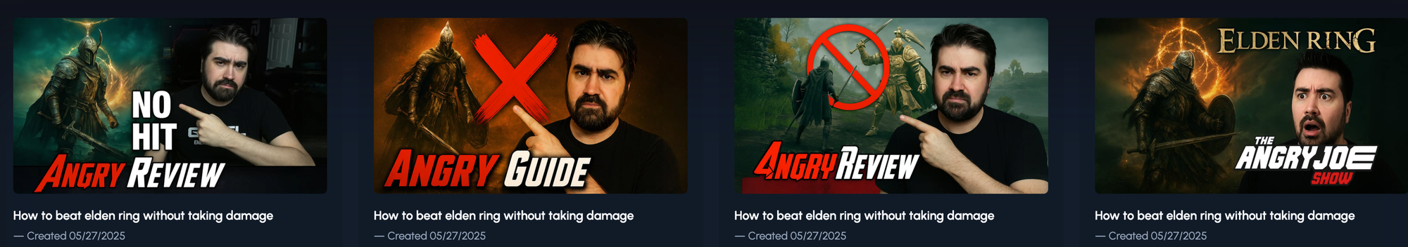 It's taken Mr Beast's branding style and created thumbnails based on it.