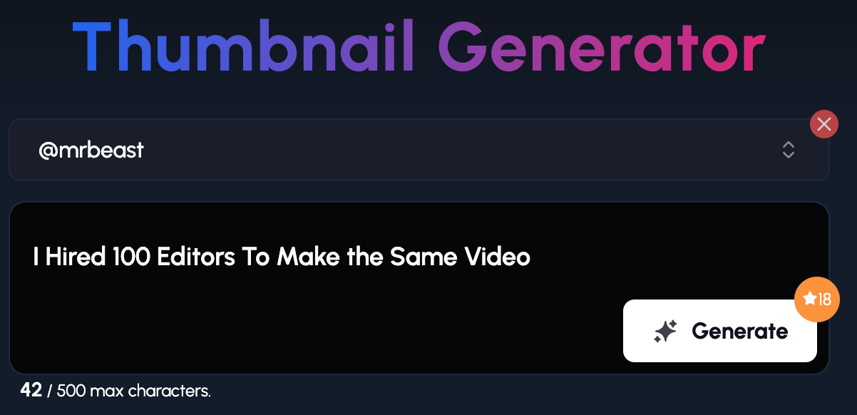 You can tell 1of10’s Ai Thumbnail Generator to create you a 'VS' style thumbnail.