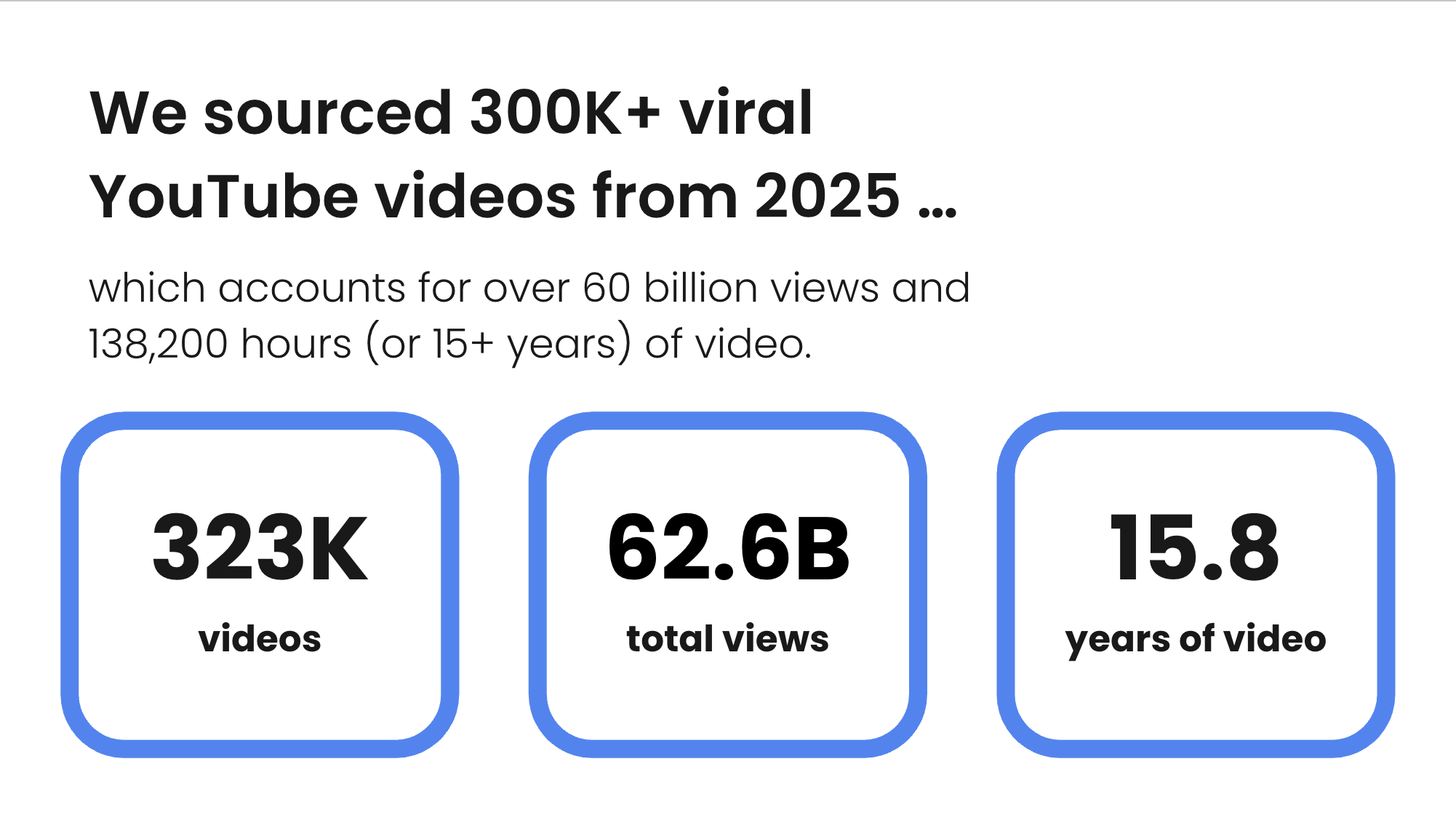 From 300,000+ high-performing videos published in 2025, totaling 62.6 billion views and 15+ years of watch time, we analyzed hundreds of variables across: