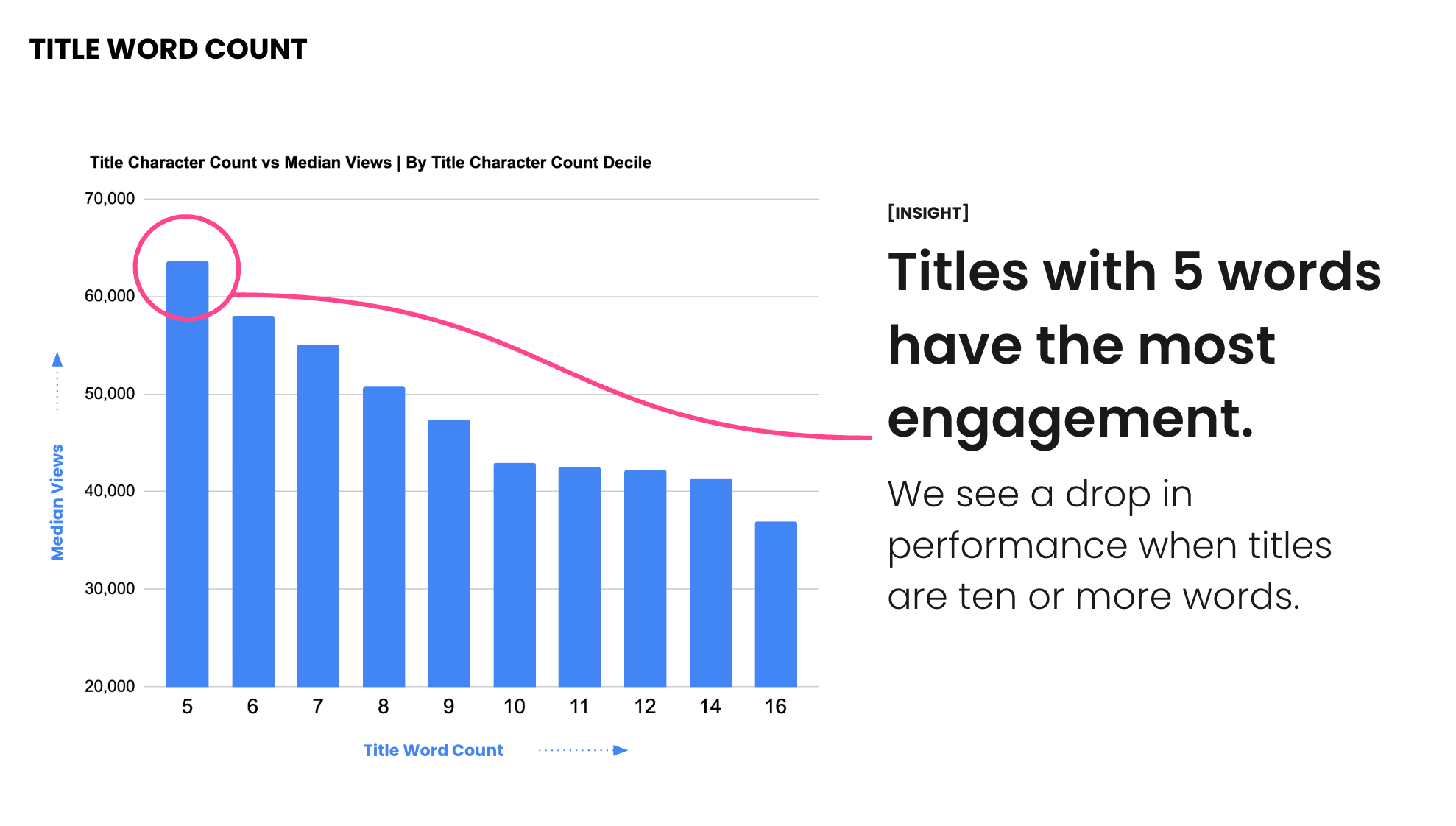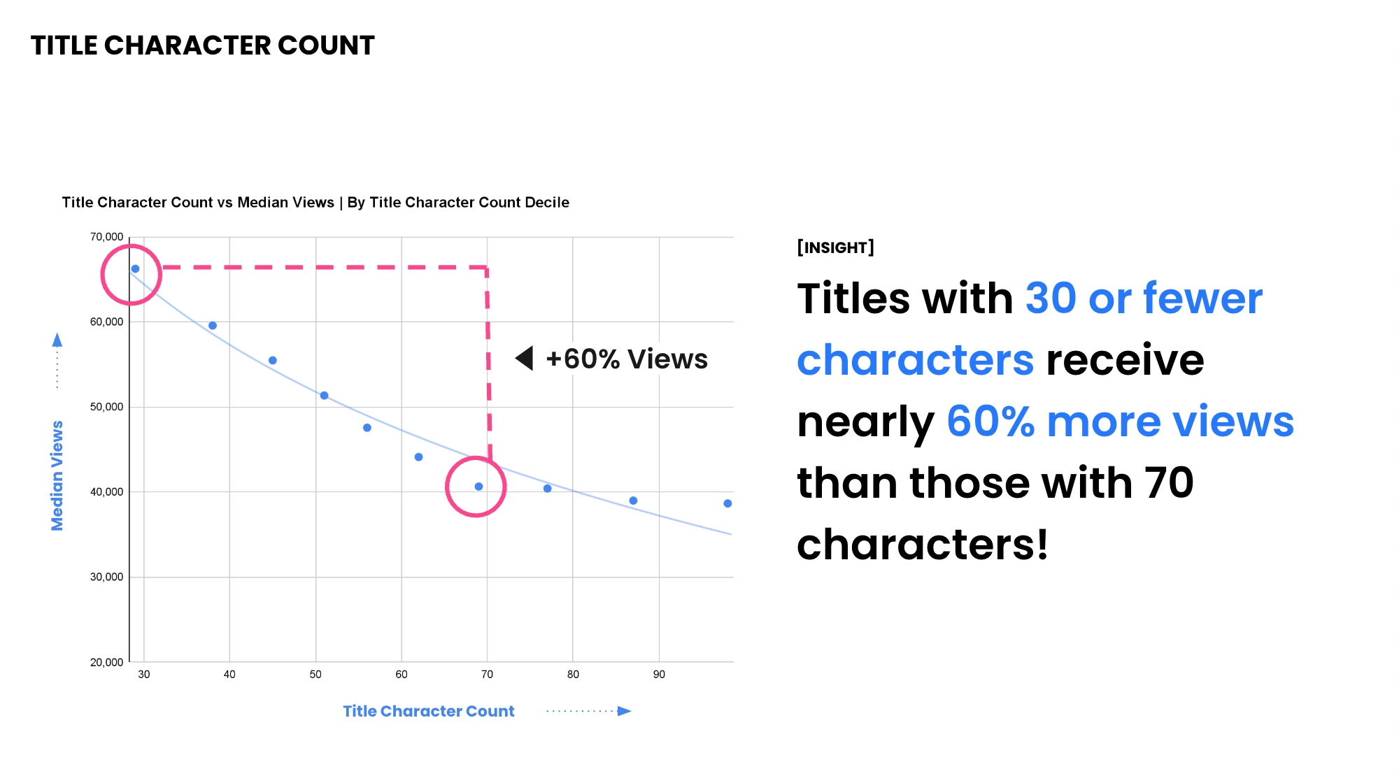 - Titles with ≤30 characters receive ~60% more views
