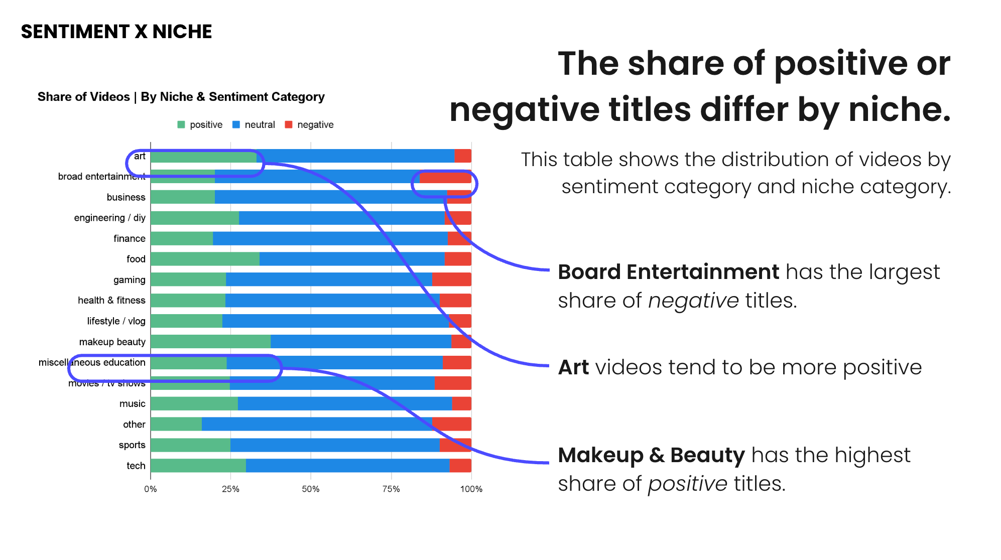 Even in traditionally “positive” niches like Makeup & Beauty, negative titles outperform positive ones.