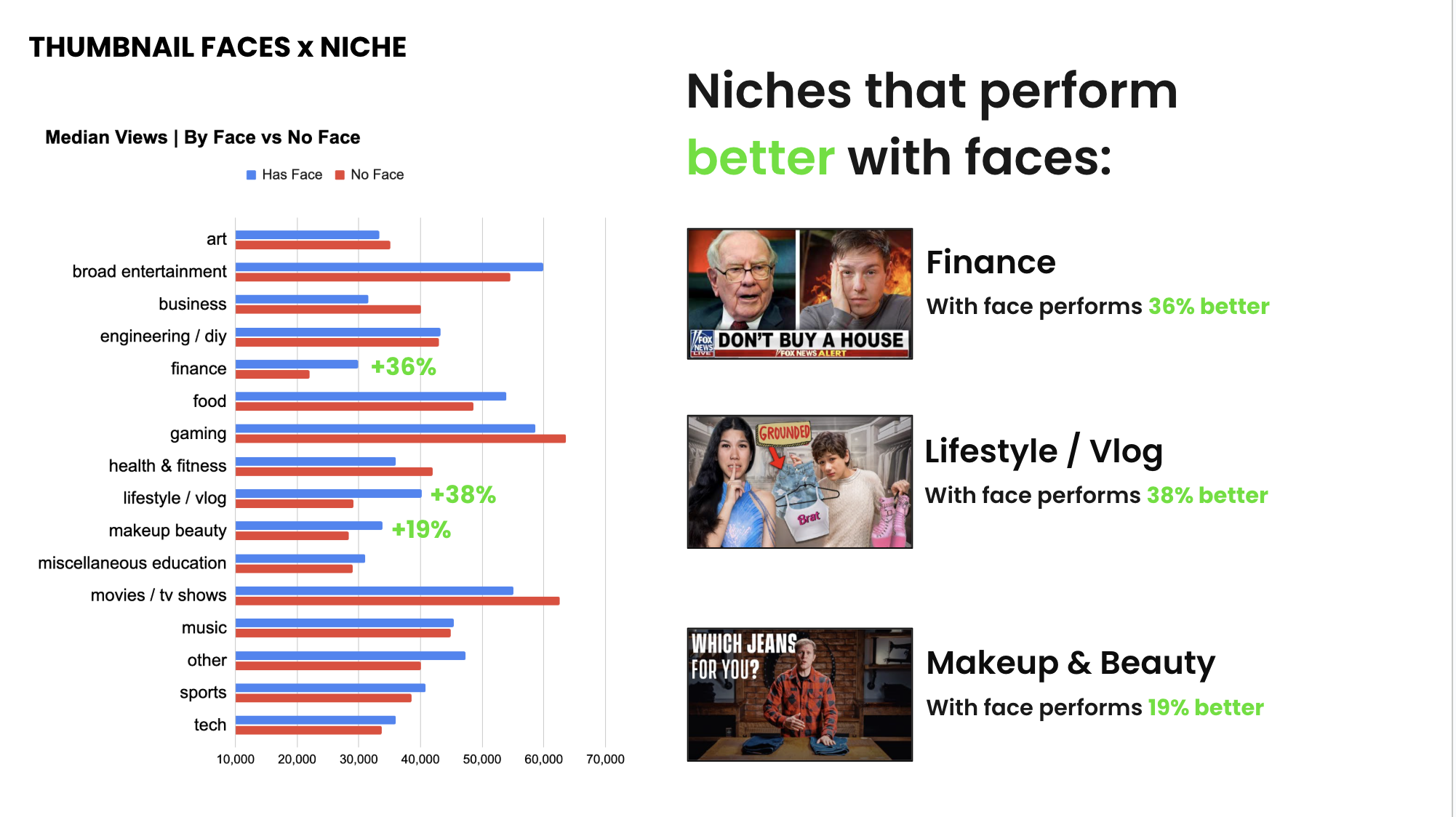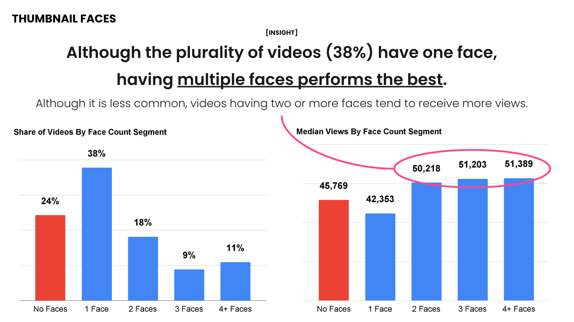 - Thumbnails with multiple faces outperform single-face thumbnails