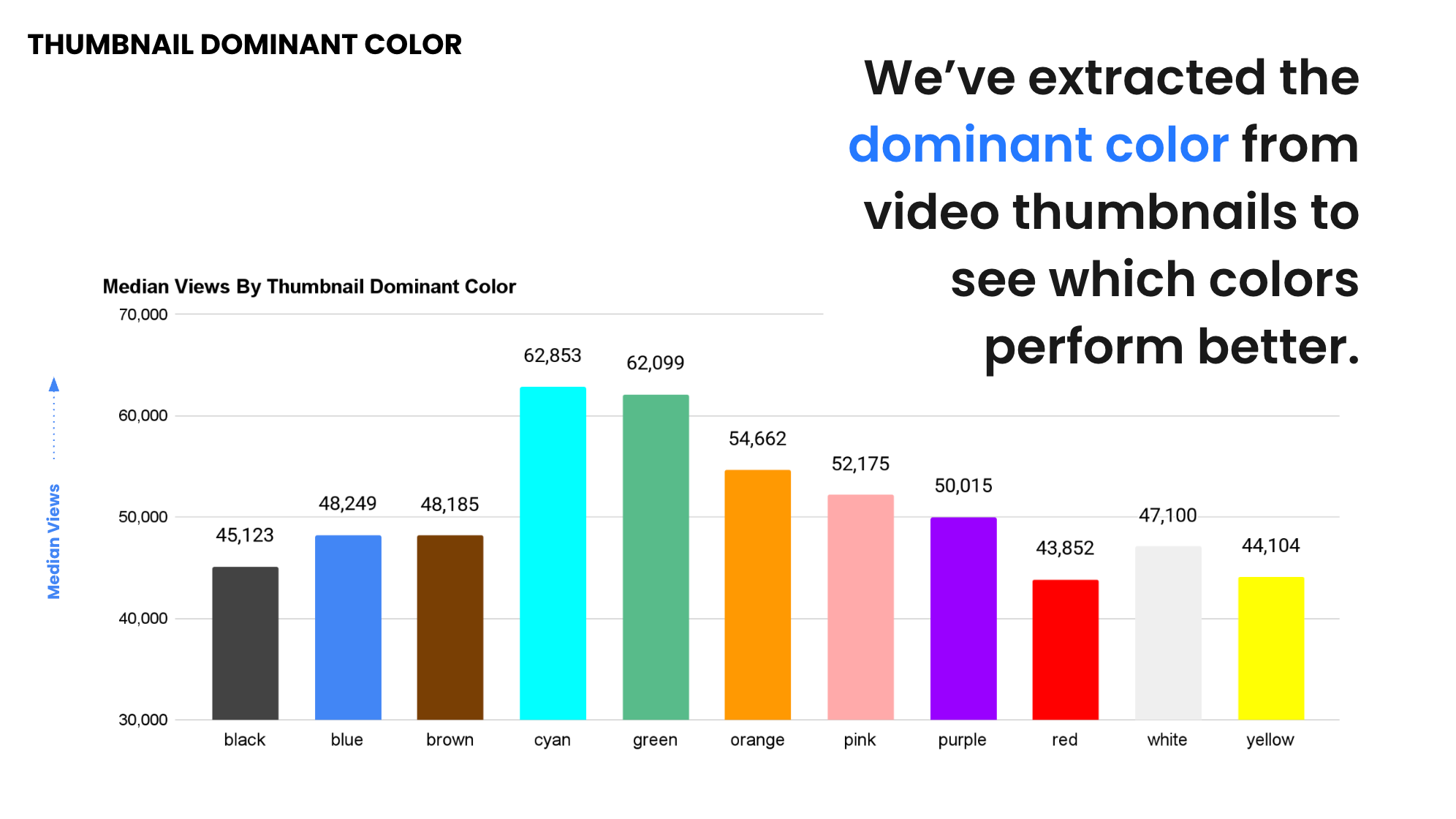 Cyan thumbnails earn ~36% more views than average.