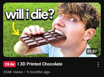 - His 3D-printed chocolate video outperformed expectations